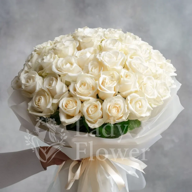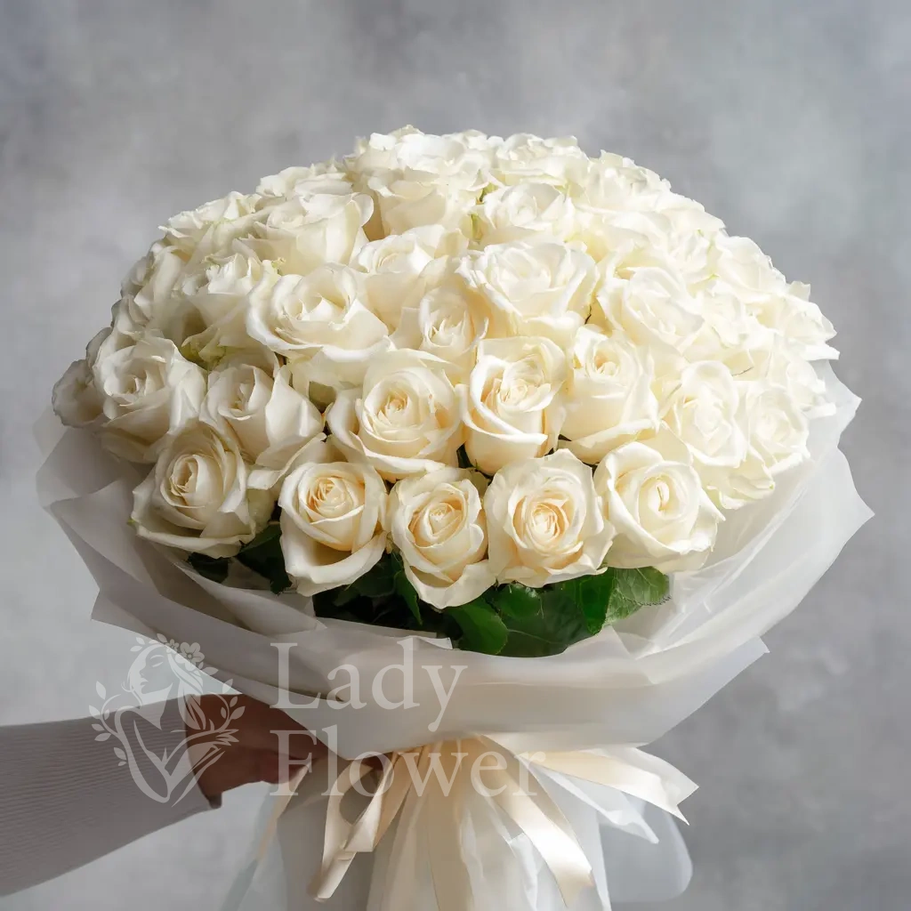 Этот букет словно соткан из шёлковых лепестков, источающих тонкий и благородный аромат. Он говорит об изысканном вкусе и глубокой, утонченной привязанности.