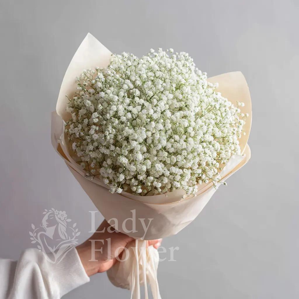 ГлавнаяКаталогМонобукетыГипсофилыМонобукет из гипсофилы «Лёгкий штрих»