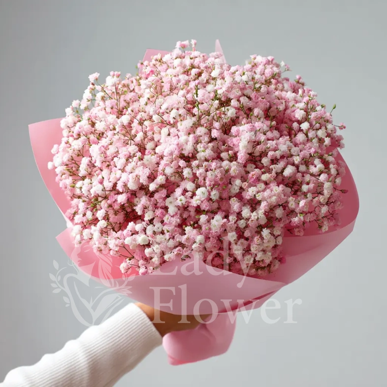 Композиция, вдохновлённая фантазией и лёгкостью. Букет из гипсофилы будто парит в воздухе — отличный вариант для сказочного настроения или подарка в стиле “wow-эффекта”.
