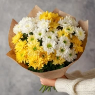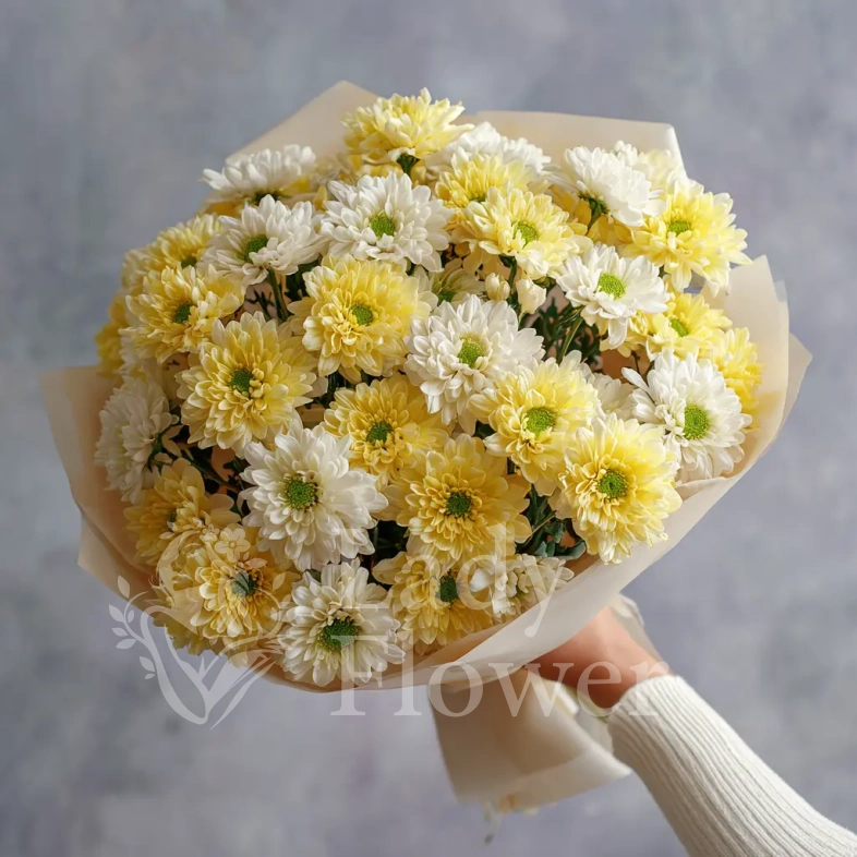 ГлавнаяКаталогМонобукетыХризантемыМонобукет из хризантем «Подарок сентября»