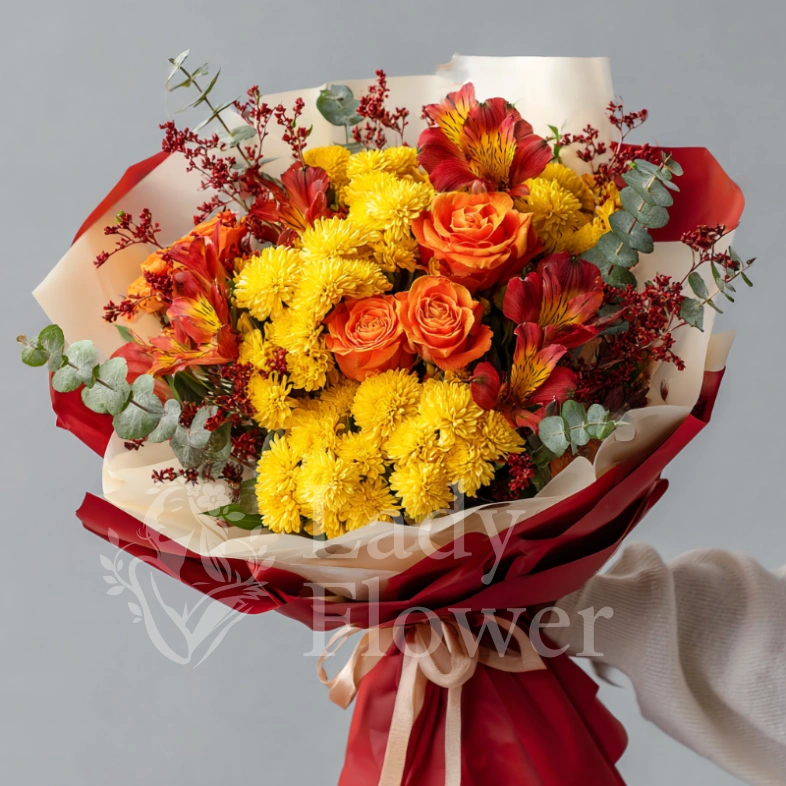 ГлавнаяКаталогБукетыХризантемыБукет с хризантемами «Тёплый взгляд»