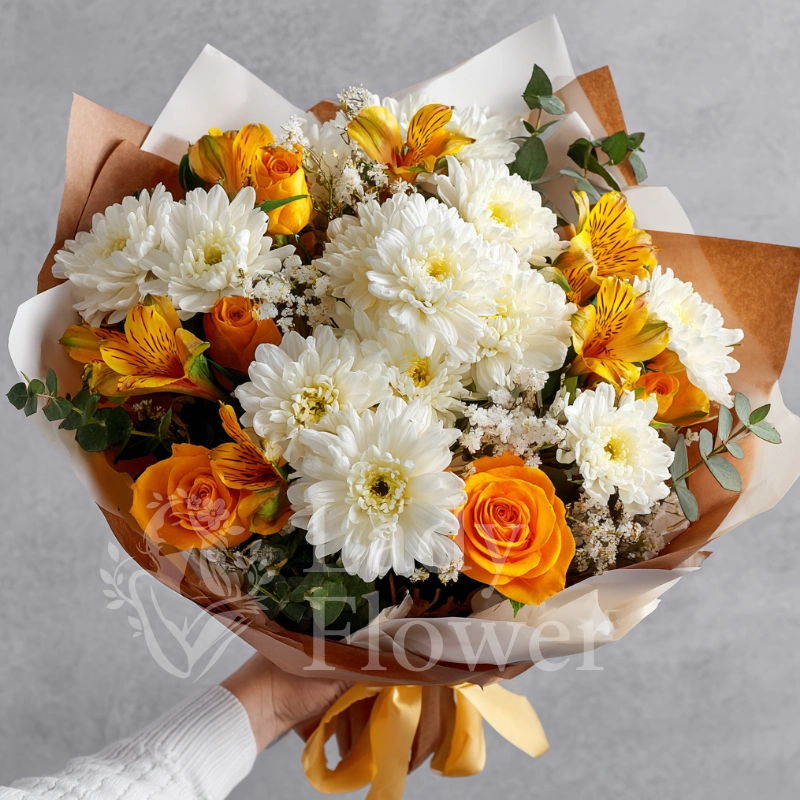 Художественная композиция, где каждая хризантема звучит своей нотой. Букет с характером, гармонией и стилем. Подойдёт для подарков учителям, коллегам или любимым.