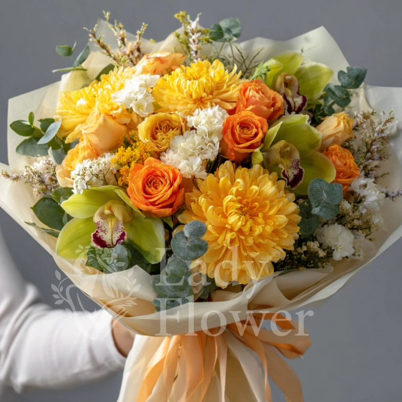 ГлавнаяКаталогБукетыХризантемыБукет с хризантемами «Классика тепла»