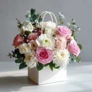 ГлавнаяКаталогКомпозицииВ сумочкахКомпозиция в сумочке «Нежность с собой»