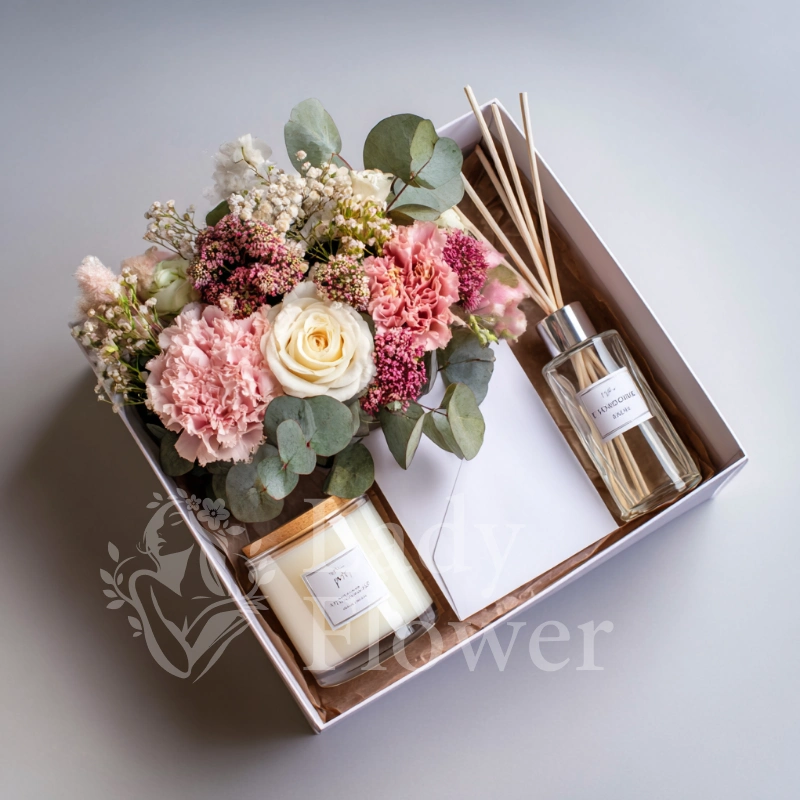 Этот набор, словно глоток чистого летнего воздуха, наполнит ваш дом лёгкостью и цветочной гармонией. Нежная флористическая композиция, интерьерная свеча и тонкий шлейф аромата из диффузора создадут атмосферу пробуждения и радости.